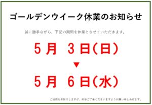 GW休業のお知らせ